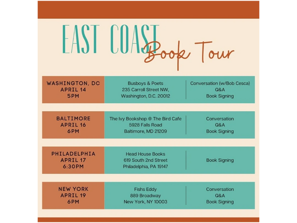 We can't wait to meet you on the East Coast Book Tour!! Poster #2 - keep checking for update! Some places need reservations for the free events due to limited space, so check with the venues!!